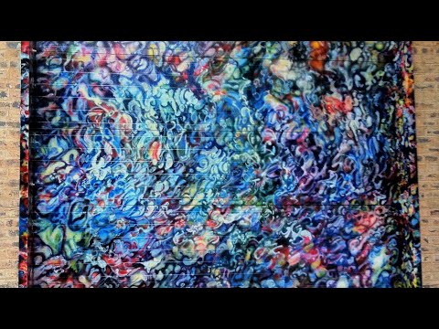 Part of an airbrush series on wood panel, this piece showcases Larry’s skillful control of gradient and form. The custom frame, also crafted by the artist, complements the sleek, atmospheric quality of the work. This series extended beyond the studio—Larry translated the technique into a large-scale outdoor mural on a garage door in Chicago, a process captured in the accompanying video.